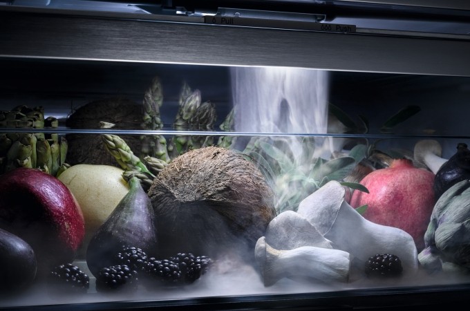 Pour prolonger au maximum la conservation des fruits et légumes frais, Miele a doté ses réfrigérateurs K4000 de la technologie PerfectFresh Active. Celle-ci permet d'envoyer une légère brume sur les aliments, afin de préserver leur texture et leur saveur jusqu'à 5 fois plus longtemps.